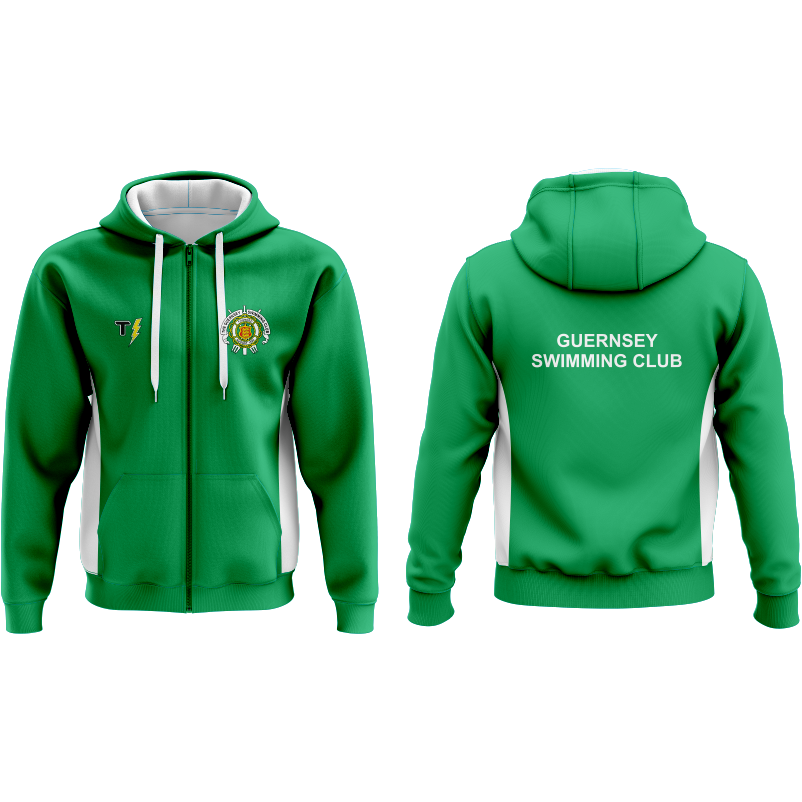 Guernsey Swimming Club Hoody is made from Comfy 350CK with the club logo is embroidered on the left breast and text on the back.